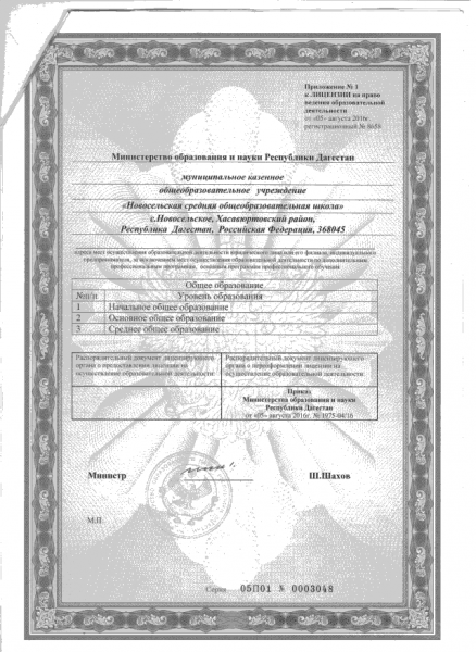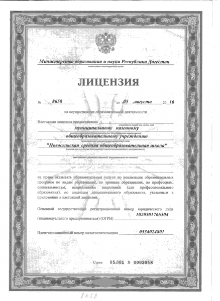 | Адрес местонахождения образовательной организации* | 368034 РД Хасавюртовский район с.Новосельское ул. Центральная 46 |